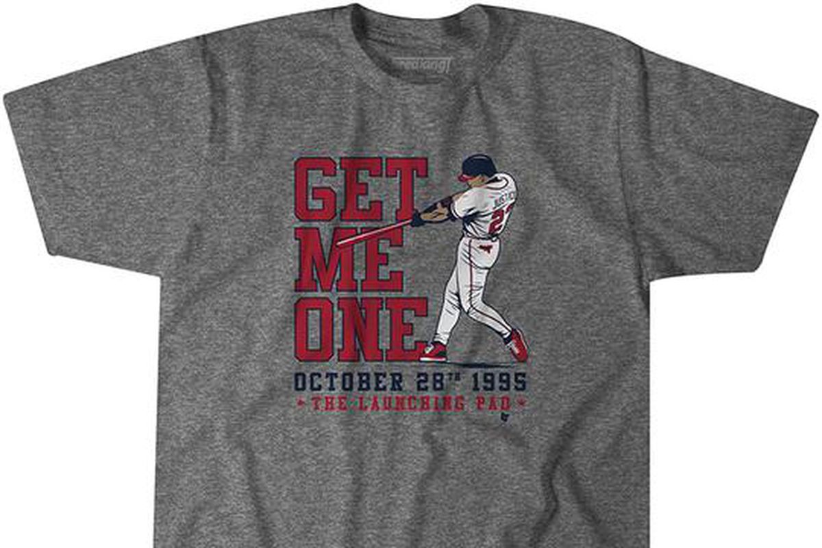 The shirt is part of Breaking T’s Classic Collection. It features Glavine’s classic quote and silhouette picture of Justice’s home run. The shirt is an officially licensed product by the Major League Baseball Players Association and is available in a variety of sizes. Click below to get yours now!